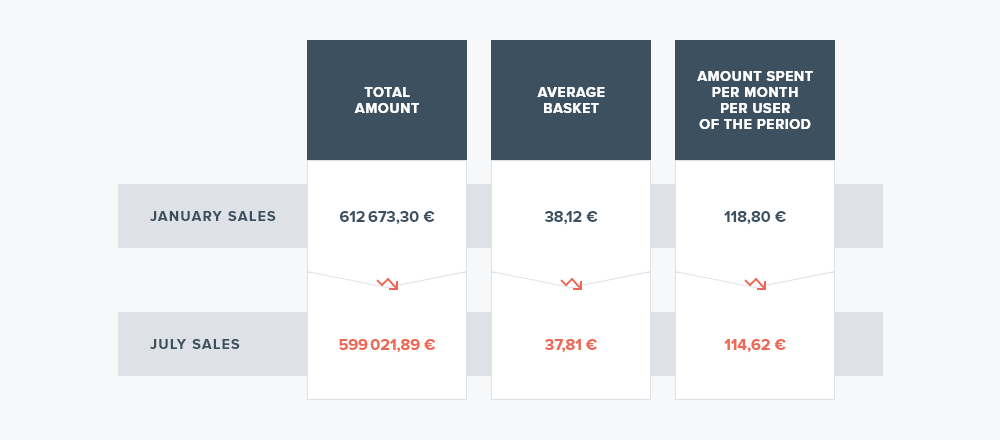 Key metrics such as total amount spent, average basket, and amount spent per user during the sales period also saw a slight fall, but a fall nonetheless that characterized a slow down for retailers looking to move inventory following a tough period.