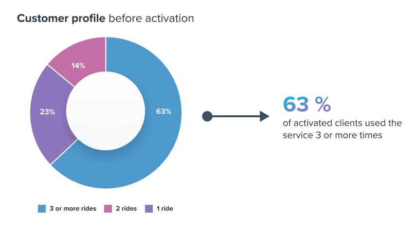 The creation of repeat customers was also evident in France. 77 percent of the activated audience rode Cooltra scooters twice or more the following year. In total, 63% of the newly activated customers chose Cooltra’s green alternative to mobility three or more times.