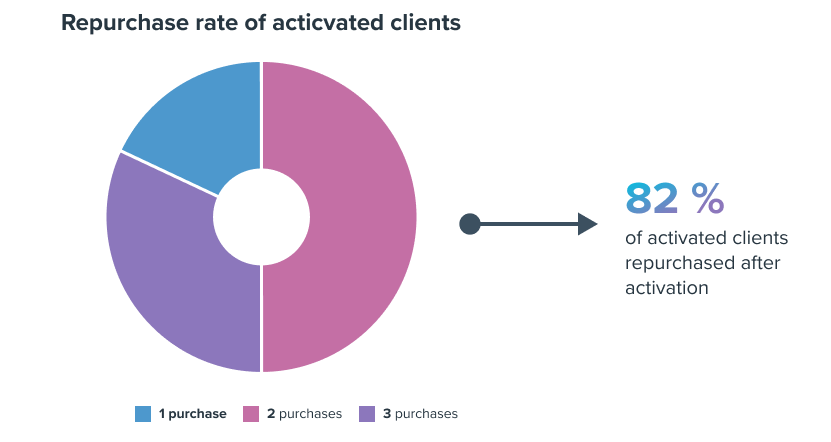 - 82% of loyal customers made multiple purchases at Etam after receiving a cashback reward. Those same customers saw their purchase frequency increase by +88% compared to the average seen 6 months before reward eligibility.