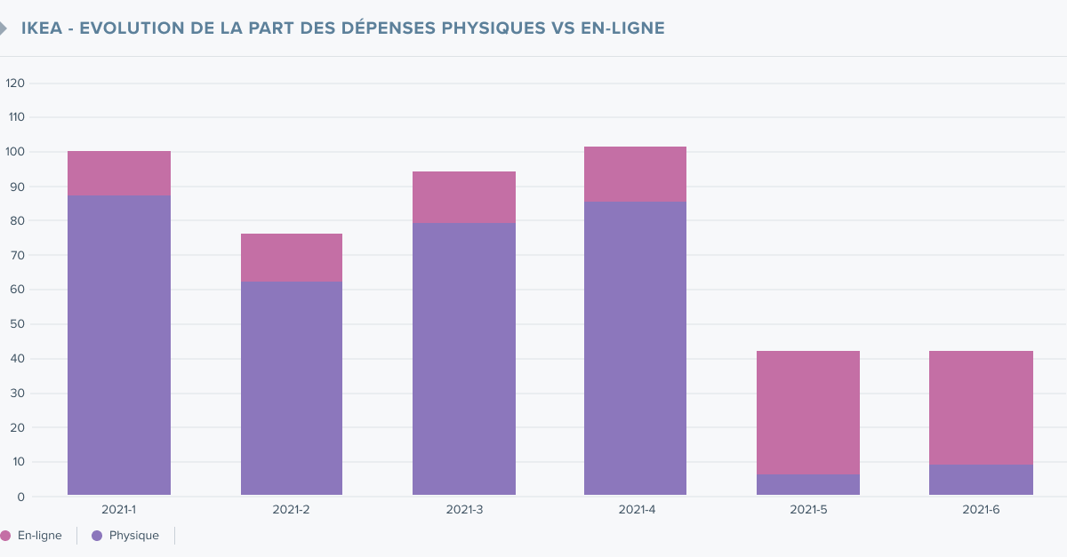 À mesure radicale effets radicaux : la fermeture de 32 magasins IKEA sur 34 a fait chuter de 93% le CA des ventes physiques sur la première semaine de février 2021 par rapport à la dernière de janvier, tandis que sur la même période le CA des ventes en ligne augmentait de 127%, et même de 148% si l’on considère les deux premières semaines de février. Résultat net : une baisse de 58% du CA sur la première semaine de février par rapport à la dernière de janvier, et de 52% pour les deux premières semaines de février.