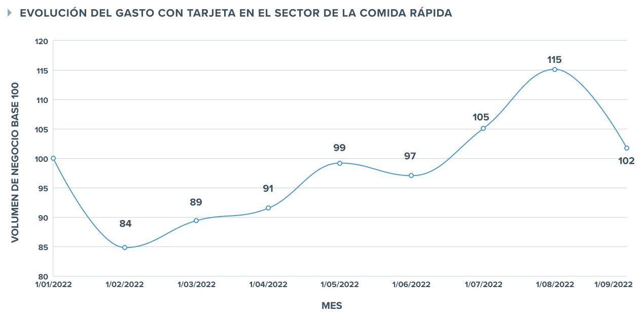 Tras un pico de actividad estival en el sector de la comida rápida, ha llegado una ralentización otoñal del consumo, documentada por una caída del gasto en tarjetas de los consumidores en septiembre.