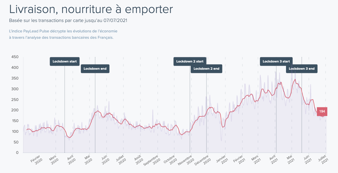 Les données de cet article sont basées sur l’analyse des achats effectués par carte en France auprès des enseignes étudiées jusqu’au 07/07/2021. Elles sont anonymisées et proviennent uniquement des cartes “principales” des consommateurs inscrits sur les programmes de nos partenaires (banques, fintechs, compagnies d'assurance et programmes de récompenses).