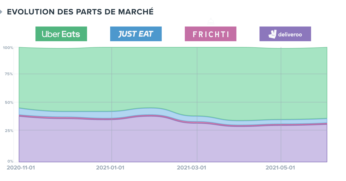 Quant à Frichti et Just Eat, ils peinent encore à trouver leur place dans ce marché, avec des clients extrêmement volatils, et des parts de marché qui plafonnent à 1% pour Frichti et restent autour de 5 % pour Just Eat.