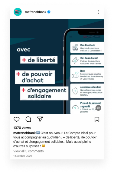 Including automatic cashback in ads across city, centers have also been a frequently used communication method at launch, garnering visibility for the program and our partner's overall offering. Ma French Bank, the digital bank of La Banque Postale, placed ads in the Paris metro highlighting the cashback feature with great success, as new clients were quoted in a survey saying it was one of the top three reasons they chose to open an account. Read the case study here.
